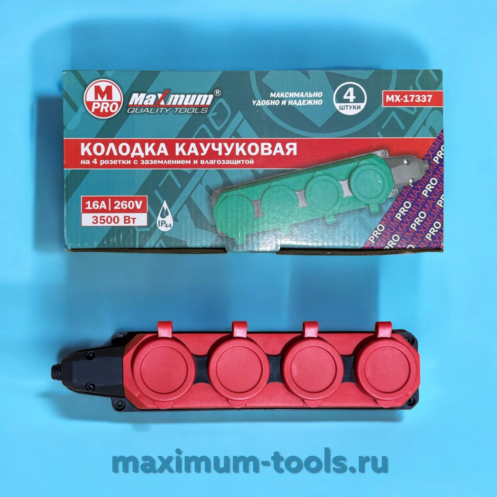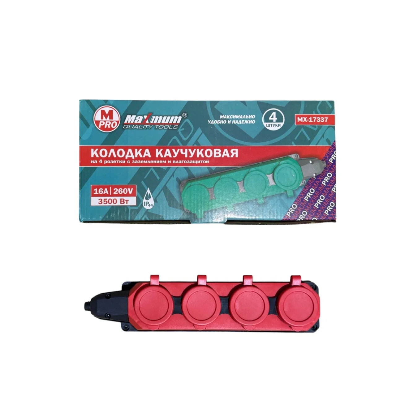 Колодка каучуковая на 3 розетки с защитными красными крышками, IP44,16A, 3500Вт "MAXIMUM" MX 17320